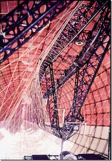 This detailed close-up shows the “crow’s nest” area. The ladder leads from just forward of the mooring platform to the small observation platform, which can be seen just above the “hub” of the wagon wheel shaped girder reinforcement at Ring 244.5. At the very upper right corner of the photo is the circular frame for the hatch through which the navigators would take their star sights. The small dark rectangle just below the hatch frame may be a writing surface that the navigators could use while making sight notations.